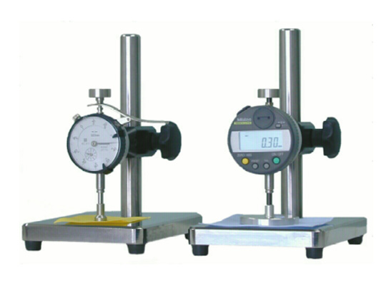本仪器是对纺织品、针织品及胶卷、橡胶、泡沫塑料等的厚度进行测定的装置。由于被测定物的不同,加压压力和压脚直径也不同。为了对适应各种规格被测物的测定,本仪器使用可调换压脚及加压砝码。